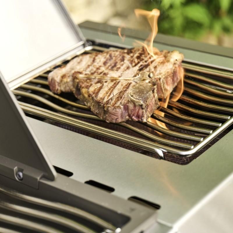 - Boční infračervený hořák SIZZLE ZONE s teplotou až 800 °C je perfektní pro rychlé zatažení steaků před samotným grilováním, ale zároveň poslouží jako postranní vařič