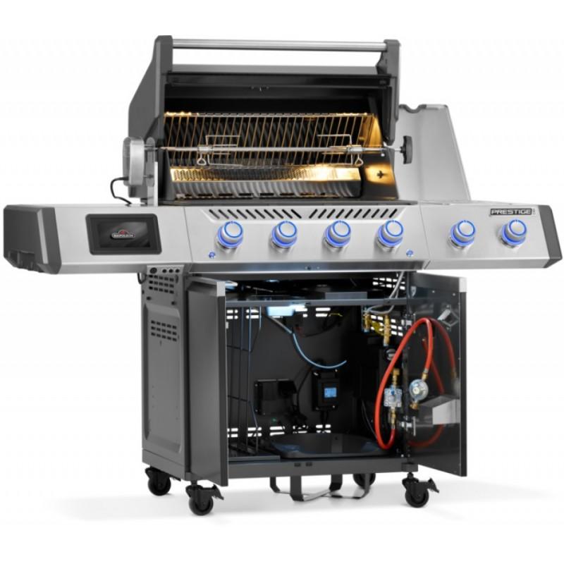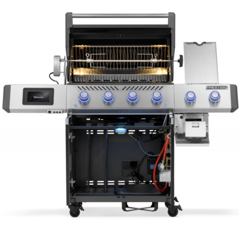 - Moderní plynový gril v černém provedení Napoleon Prestige PRO500 WIFI je vybavený čtyřmi nerezovými hořáky, jedním zadním infračerveným hořákem určeným pro rožnění a jedním extra velkým bočním hořákem SIZZLE ZONE