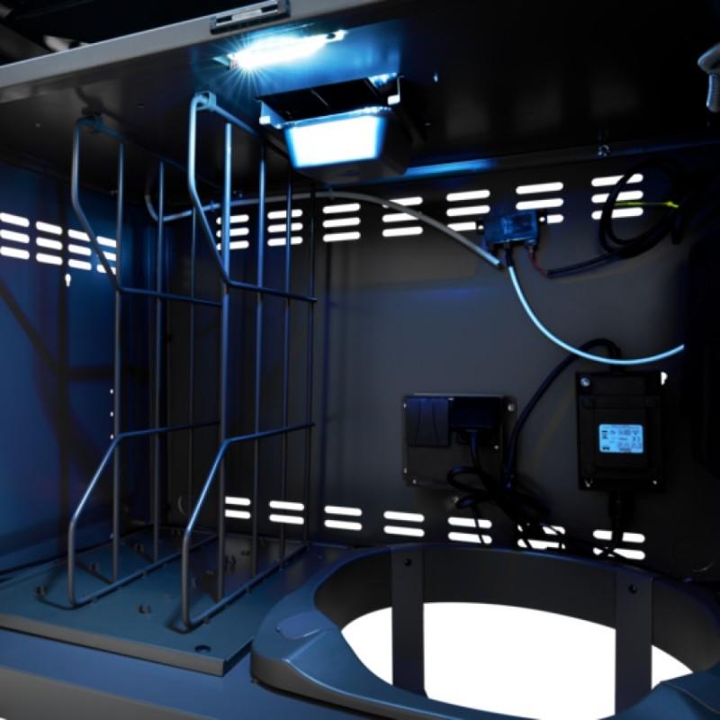 - Pod grilovací vanou je velkorysý úložný prostor v podobě skříně s dvoukřídlými dvířky, do které se vejde i 10 kg PB láhev